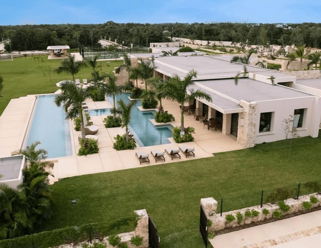 Casa club con alberca, gimnasio, canchas de pádel.